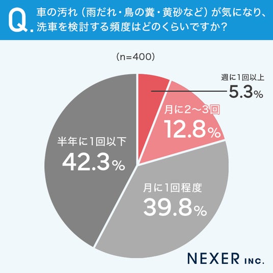 続いて、車の汚れが気になり洗車を検討する頻度について聞いてみました。
