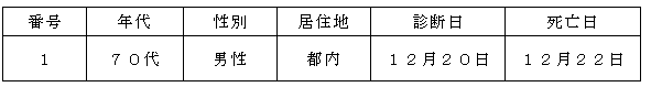 都内で新型コロナウイルスに感染した方が死亡されましたのでお知らせします。