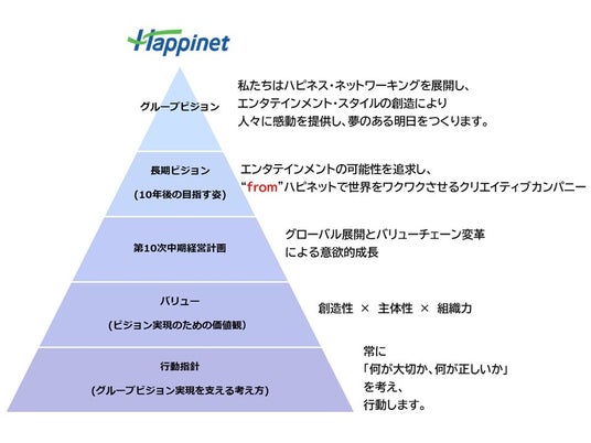 ハピネットは2022年4月より長期ビジョンを設定し、その達成のための取り組みとして2022年から3か年の「第9次中期経営」のもと、2025年4月からは「第10次中期経営計画」のもと、事業を推進しています。