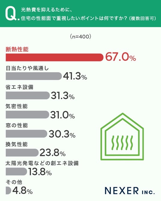 ■67.0%が、光熱費を抑えるために「断熱性能」を重視したいと回答