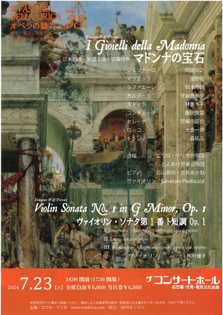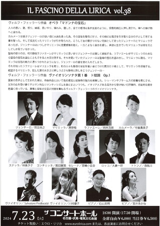 エウロ・リリカ主催、「オペラの魅力Vol.38」が2024年7月23日 (火)に電気文化会館 ザ・コンサートホール(愛知県 名古屋市中区 栄 2-2-5)にて開催されます。