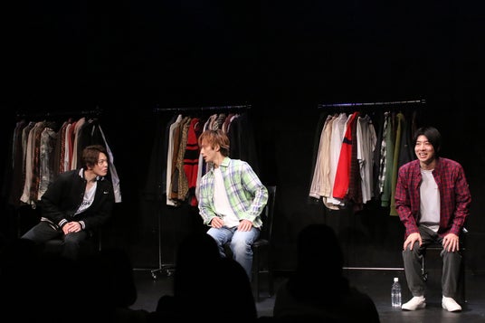 室は「小さい頃は全く喋りませんでした。でも今も人見知りです。稽古1日目とかそうだったじゃないですか」と語るが、久保田は「えっ?」と困惑気味。どんどん脱線していく話に谷が「皆さん本番の話覚えてます? (記憶から)消えましたよね」と客席に尋ねる一場面も。 「最近一番好きな食べ物はなんですか」という質問に悩む室に客席から「可愛い」という声が上がると谷が「可愛いの?」と不思議そうにしたり、久保田の「フルーツで言うと実家で作っているあまおうを食べました」という答えに2人が「マジ!? すごい!」と食いついたり。作品についての理解を深められ、キャスト陣の人となりや生い立ちにも触れられるトークだった。