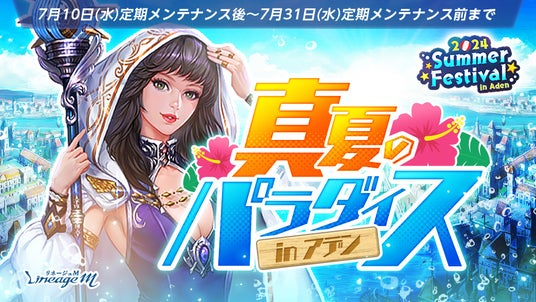 PCオンラインRPG「リネージュ」のモバイル版タイトル『Lineage M(以下、リネージュM)』のサービス、運営をしているエヌ・シー・ジャパン株式会社(本社:東京都港区、代表取締役会長:金 澤憲(キム テクホン)、代表取締役社長:林 元基(イム ウォンキ)、以下エヌシージャパン)は、2024年7月10日(水)に、「2024 Summer Festival in Aden」特設サイトの公開、およびイベント2種の開始をお知らせします。