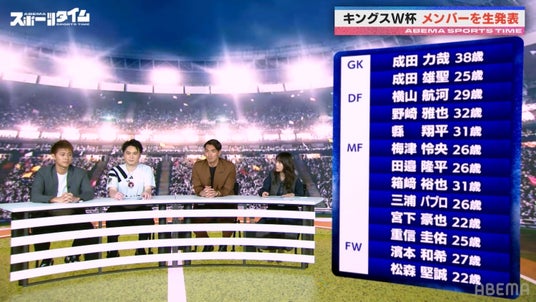 また、番組放送中には加藤さんがキングスW杯の日本代表選手13名を生発表。途中で槙野さんと品川CC監督時代に関わりのあったゴールキーパー・成田雄星選手の名前があがり、「えっ、あの成田雄星?」と確認すると「成田、すげーじゃん!」と槙野さんは大喜び。その後も知り合いの選手が続々と発表され、テンションが上がる槙野さん。選手の選抜に関わった柿谷さんは「監督の中村駿介と一緒に、とにかくグループステージを突破するために、めちゃくちゃ考えて選びました」と話し、「勝てる選手を選んだ」と自信を見せました。