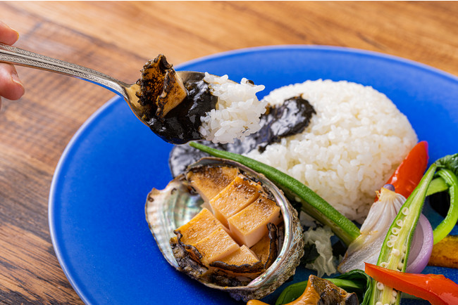 伊豆産のさざえを使用したイカ墨ブラックカレー。