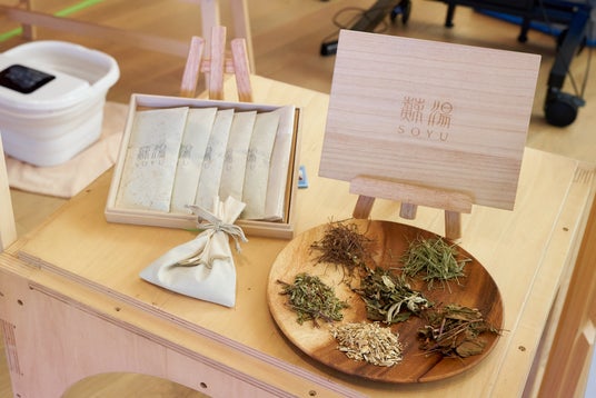 資生堂fibonaや松田医薬品株式会社など複数の企業などが協働して推進する伊吹山「蘇湯」プロジェクト。伊吹山の自然を守るための植生回復活動の一環として、希少価値の高い伊吹山産植物をアップサイクルして開発した入浴用ボタニカル「蘇湯」を展示しました。来場者には、蘇湯の足湯体験、生薬を配合した薬草湯の手作り体験、薬草のレクチャーを通じて、楽しみながら伊吹山の恵みを感じていただきました。