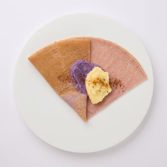 なめらかな紫芋のペーストとまろやかなカスタードクリームの優しい甘味が特徴のクレープ。