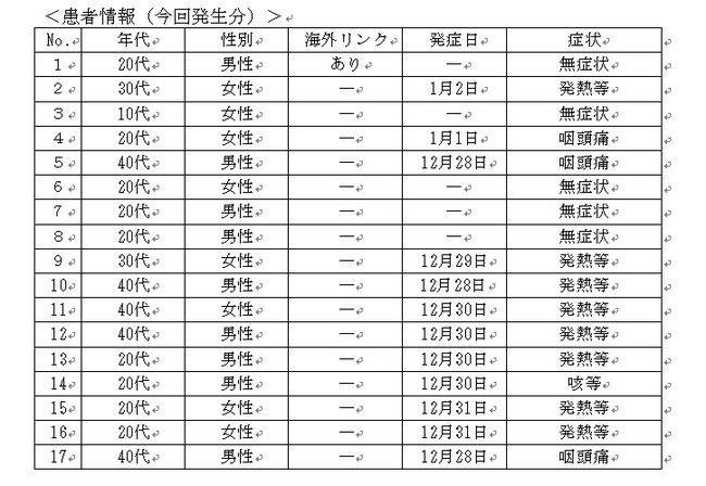 ・オミクロン株確認例:17例(うち、海外リンク(※)あり:1例)