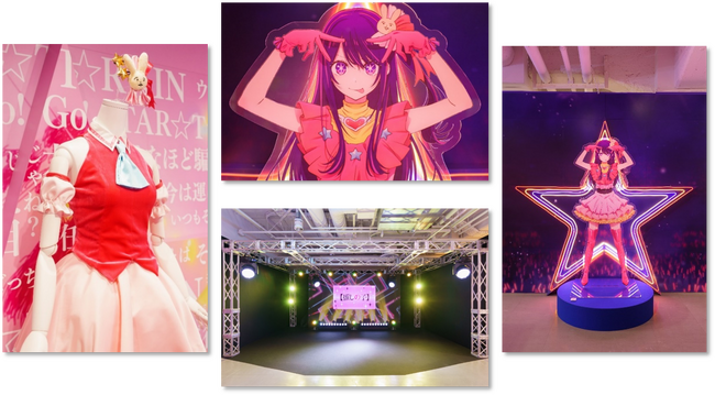本展では、TVアニメ『【推しの子】』に使用された絵コンテ、原画の複製展示の他、物語の中で着用している衣装の再現展示、ライブステージ映像コンテンツ、作中の印象に残る様々なシーンを再現し、体験が出来る多くのフォトスポットなどをお楽しみ頂けます。
