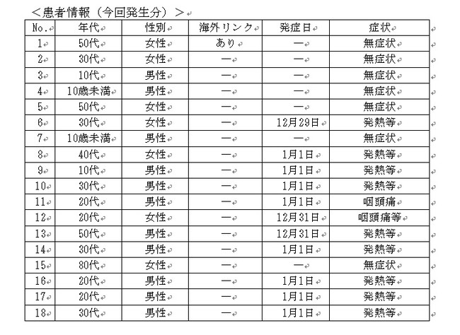 ・オミクロン株確認例:18例(うち、海外リンク(※)あり:1例)