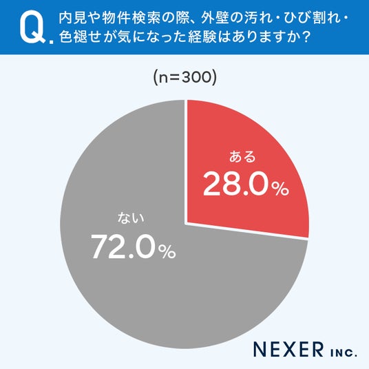 ■28.0%が、外壁の汚れ・ひび割れ・色褪せが「気になった経験がある」と回答