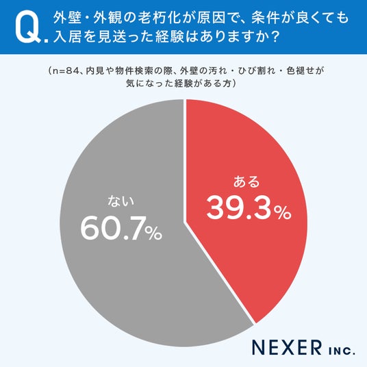 ■外壁が気になった方の39.3%が、条件が良くても「入居を見送った経験がある」と回答