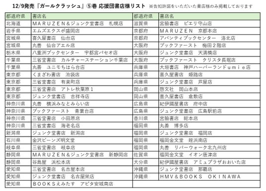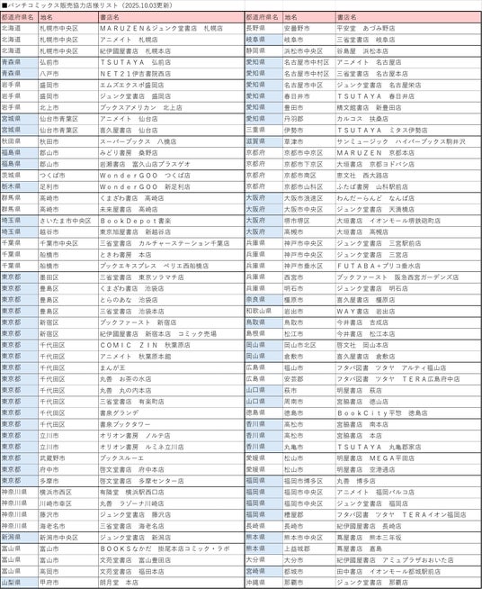 【バンチコミックス販売協力店】【応援団書店】は以下の通りです。