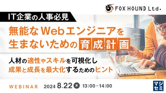 マジセミ株式会社は「【IT企業の人事必見】無能なWebエンジニアを生まないための育成計画」というテーマのウェビナーを開催します。