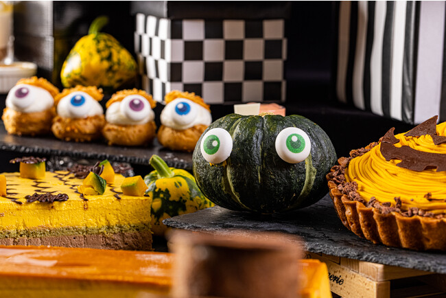 お客様の目の前で仕上げる実演は6種類。鉄板焼で音や香りまで楽しめる「牛肉の鉄板焼 野菜のソテー」「卵の入ったガーリックライス」や、ハロウィン風にデコレーションする「ハロウィンミルフィーユパフェ」など、美味しさとともに五感を刺激するフェアです。