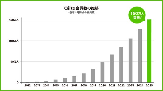 「Qiita」会員数150万人突破!直近1年間では23万人増加