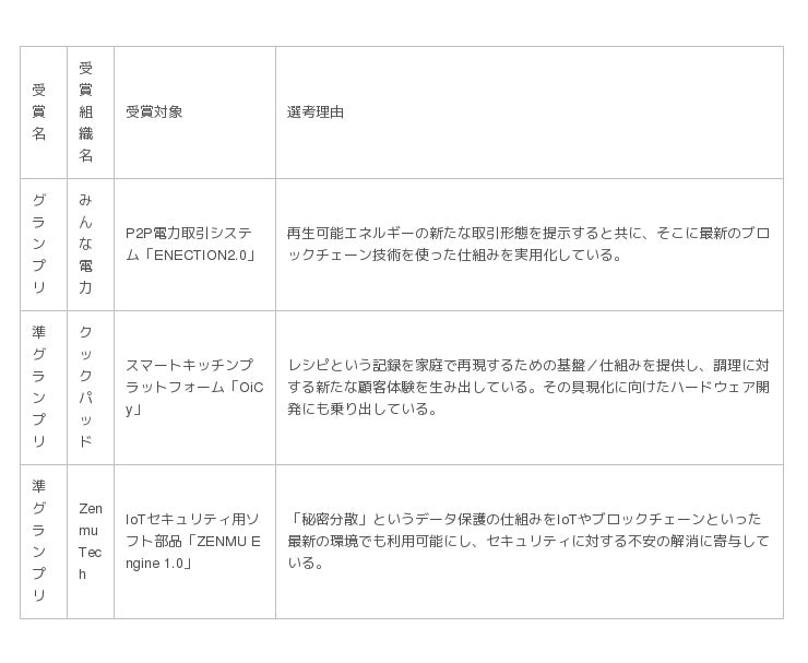各部門のグランプリおよび準グランプリの受賞内容と選考理由は以下になります。