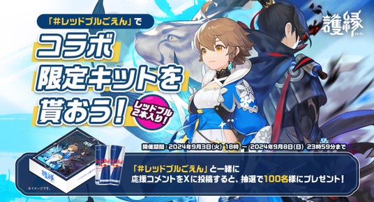 ハッシュタグ「#レッドブルごえん」と一緒に、「護縁」への応援コメントをXに投稿すると抽選で100名様にプレゼントします。