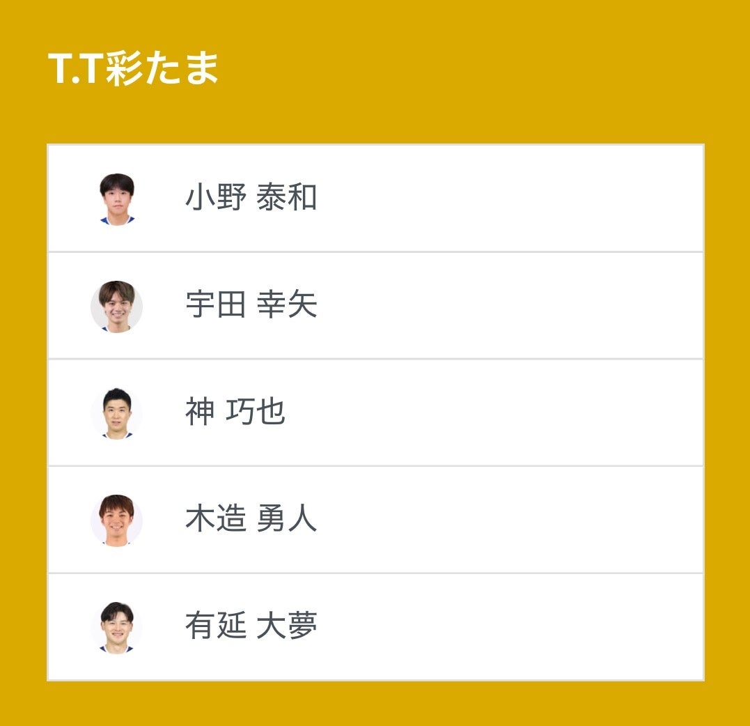 ノジマTリーグ 2025-2026シーズン 公式戦 11月9日(日)開催 木下マイスター東京 vs T.T彩たまのベンチ入り選手を発表いたします。