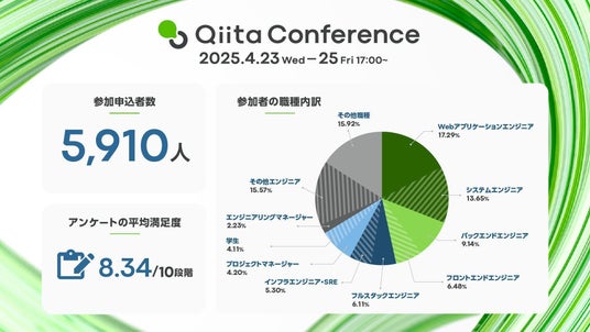 創造性と技術力で多様なITサービスを展開する株式会社エイチームホールディングスのグループ会社であるQiita株式会社(本社:名古屋市中村区、代表取締役社長:柴田健介)は、エンジニア向けオンラインイベント「Qiita Conference 2025(キータ カンファレンス 2025)」を2025年4月23日(水)~4月25日(金)の3日間にわたり開催しました。