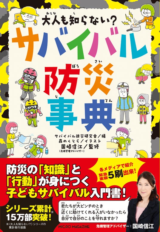 自然災害やアウトドアレジャーでの不測の事態、日常の危険などから子ども自身が身を守るためのテクニックを紹介する、ハンディーな一冊『大人も知らない? サバイバル防災事典』が重版5刷出来!