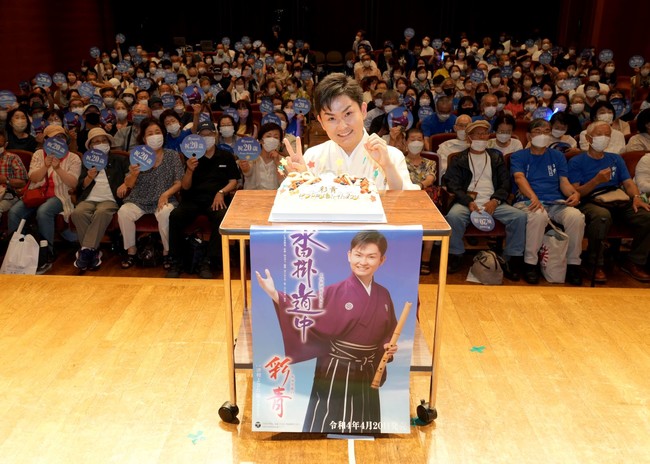 その中で、「デビューをさせていただいて3年がたち、4年目を迎えさせていただきましたが、それも師匠、スタッフ、そして今日ここまで応援してくださっているファンの皆さまのお陰です。僕は5歳から民謡を習い始め、尺八、津軽三味線と習ってまいりましたが、小学校6年生、11歳のとき、とあるテレビ番組で細川師匠に初めて歌を聴いていただき、元号が令和に変わった年の6月26日にデビューさせていただきました」と自己紹介。