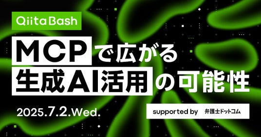 創造性と技術力で多様なITサービスを展開する株式会社エイチームホールディングスのグループ会社で、エンジニアに関する知識を記録・共有するためのサービス「Qiita(キータ)」を展開しているQiita株式会社(本社:名古屋市中村区、代表取締役社長:柴田健介)は、オフラインで技術についての知見を共有し合うトークイベント「Qiita Bash」において、2025年7月2日(水)に『MCPで広がる生成AI活用の可能性』を開催します。本イベントではLT(ライトニングトーク)とネットワーキングをご用意し、イベント参加者と登壇者のつながりや、気軽に情報交換や質問ができる場を提供します。
