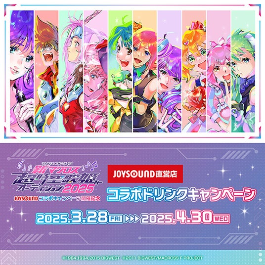 株式会社エクシングの子会社で、全国にカラオケ店舗・ネットカフェ店舗を展開する株式会社スタンダード(本社:東京都港区、代表取締役社長:小林克章)は、2025年3月28日(金)から2025年4月30日(水)までの期間中、『マクロス×サンライズ「新マクロス」超時空歌姫オーディション2025 JOYSOUNDコラボキャンペーン開催記念 JOYSOUND直営店コラボドリンクキャンペーン』と題して、JOYSOUND直営店40店舗にて、オリジナルポストカード付きコラボドリンクを展開します。
