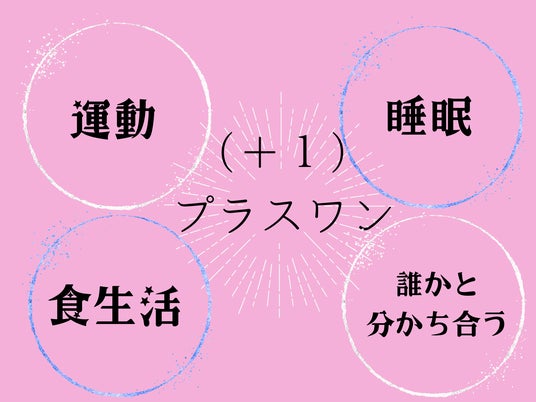 「更年期に大切な4つのこと」、いかがですか? 今すぐ全部は難しくても、少しずつ着実に進めていけそうな内容です。ここでもうひとつキャンペーンからのご提案。これら4つを参考に、ぜひあなたがもう1つ、自分なりの「+1(プラスワン)」を考えて、「更年期5つのアクション」を完成させてください!