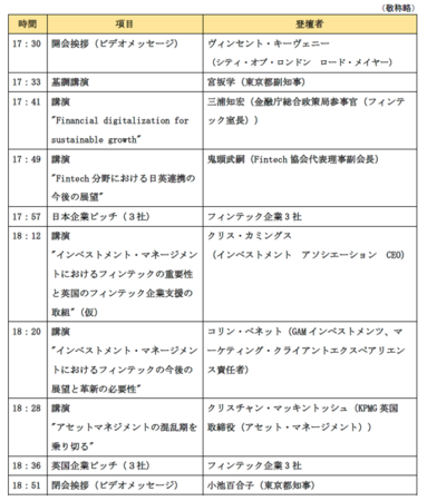 なお、本セミナーは、東京都と英国シティ・オブ・ロンドンが2017年12月に締結した、「東京都とシティ・オブ・ロンドン・コーポレーションの交流・協力に関わる合意書」(※)に基づき、開催するものです。