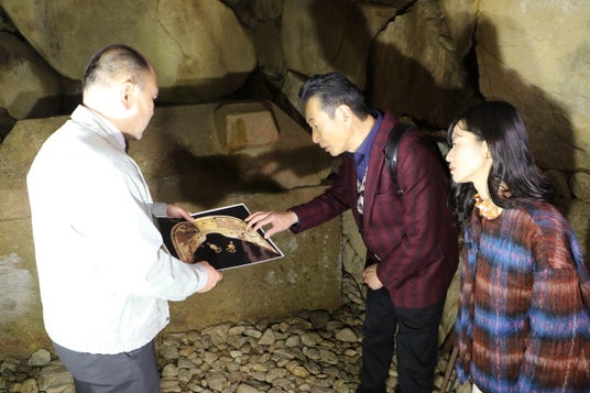 そして【史跡 藤ノ木古墳】に到着!6世紀後半に造営された直径約50メートルの円墳です。今回特別に、中へ入らせていただきます。