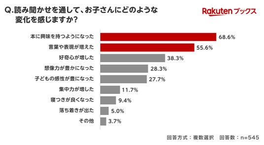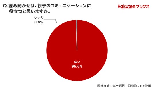 楽天グループ株式会社(以下「楽天」)が運営するオンライン書店「楽天ブックス」は、4月23日(木)から始まる「こどもの読書週間」(注)に合わせて、「楽天ブックス」ユーザー1,354名を対象に実施した、「親子の読み聞かせに関する調査」結果を発表しました。さらに、親子で楽しめる絵本時間や知育のアイデアをInstagramで発信中のインフルエンサー「れんママ」さんが監修するおすすめの絵本リストも公開しました。