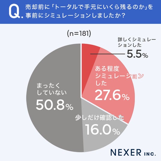 続いて、売却前に「トータルで手元にいくら残るのか」を事前にシミュレーションしたかどうかについて聞いてみました。