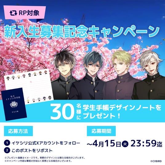 「イケメンシリーズ」公式X(https://x.com/CYikemen)では新入生募集を記念して、学生手帳デザインノートが30名に当たるキャンペーンを実施します。