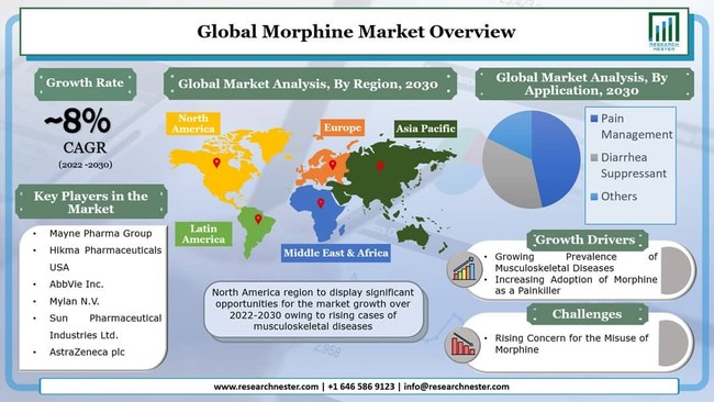 世界のモルヒネ市場は、2022-2030年の予測期間中にCAGRが約8%で成長すると推定されています。
