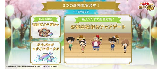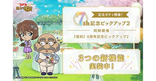 株式会社サイバード(本社:東京都品川区、代表取締役社長 兼 CEO 長嶋 貴之)の、名探偵コナンのスマートフォン向けパズルゲーム『名探偵コナンパズル 盤上の連鎖(クロスチェイン)』は、3月29日(土)にサービス開始より7周年を迎えます。これを記念し、2025年4月3日(木)から期間限定で、7周年記念ピックアップ2・復刻6周年ピックアップ2を開催します。また一部期間限定で、カムバックログインボーナス、1日1回限定有償ダイヤガチャ、お部屋機能のアップデートの3つの新機能が実装中です。