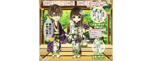4月9日(水)12時から開催の本編・続編応援キャンペーン「彼×私×彼~ふたり分の愛に溶かされて~」と「猿飛佐助」本編「永遠の恋」ルートの連動企画を開催しています。