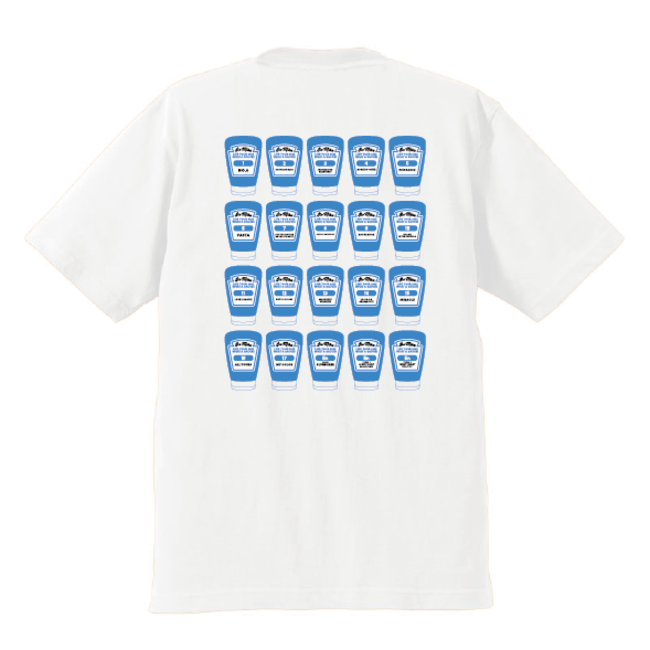 背面にはライブで披露された楽曲ひとつひとつをパスタソースに見立てたコンテンポラリーアート風のデザインが描かれている。普段使いからライブの参戦服まで、幅広く着こなせるアイテムとなっている。