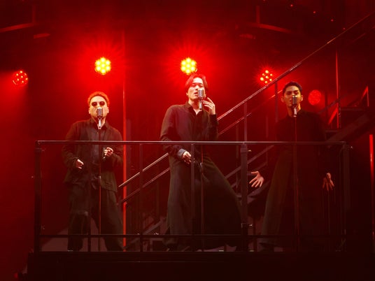 シンプルなピアノの音から始まり、渋谷のスクランブル交差点、そして渋谷を歩きながら透明なガラス球を街のあちこちに置く城田の姿が映像で映し出され、球は城田の眼へと昇華する。これは一体何を意味するのだろう?と考えるうちに、キャスト全員による『RENT』の「Seasons of Love」がしっとりと始まった。美しいハーモニーとダンサーの身体表現に震えていると、渋谷のあちこちを楽しそうに走り回るRainy。15歳とyuzu14歳の映像が!この曲をこうアレンジ!?そうきたか!とテンションが一気に上がった。未来への希望を高らかに歌う二人、可愛くてフレッシュで、何より歌も上手いしエネルギッシュ。すごい才能が現れた!とすっかり二人の虜になってしまった。ダンサーのソロでは原田薫、大村俊介[SHUN]、碓井菜央の舞台好きならお馴染みのダンス界を牽引するベテラン勢から、SNSでバズり中のストリート系BOXER、情感溢れるダンスが見事な新星・高村月がガッツリ魅せる。次の「Dreamgirls Medley」ではSWEEP、RIOSKE(ペルピンズ)、吉田広大の声量合戦(!?)に、驚くやら感動するやら。男性がこのナンバーを歌うのも面白いし、素晴らしい歌声が劇場を満たす、そこに浸れて多幸感MAXだ。もちろん城田優も負けてはいない。あの名作ミュージカルの女性が歌う名曲を切なく愛らしく歌い、こんな声も出せるんだ!と目からウロコ。このショーのユニークなところは、何らかのストーリーが通底しているようで、大村俊介[SHUN]が踊る、とあるパートは原曲の軽やかなトーンとは真逆のダークな世界観で驚き、打ちのめされた。過去の歴史か、もしくは今か。ここは観る人によって解釈が分かれそうだが、そこから『エリザベート』の「闇が広がる」につながり、そう来るか!である。