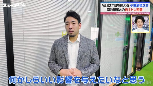そして小笠原選手は、WBC日本代表にも選ばれているロサンゼルス・エンゼルスの菊池雄星選手との合同トレーニングを開始。自分よりも平均球速が6キロ速い菊池選手はまさに求めている姿で、最初の体幹トレーニングでは早速、差を見せつけられてしまったものの、「くらいつくしかない」と必死に励んだ小笠原選手。そんな姿を見た菊池選手も同じくメジャー1年目で多くの困難を経験した過去から、小笠原選手と自身を重ね合わせており、今回の合同トレーニングについても「1年目でいろいろ悩んだり、壁にぶち当たったと思う。僕自身も同じように1年目に苦しみましたから。そこからトライ&エラーを分析して工夫すれば、必ずメジャーで長く活躍できるピッチャーだと思うので、何かしら良い影響を与えたいなと思っています」と期待を込めた眼差しに温かさを滲ませました。