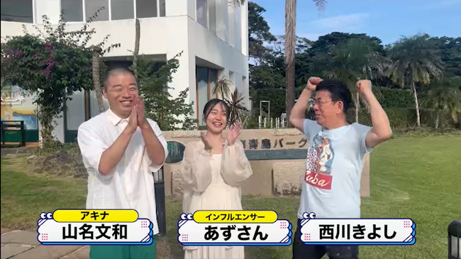 西川きよしが全国のインフルエンサーとコラボして、“お初なこと”を体験していく『西川きよしのコツコツ大冒険!』の「#16」が、10月28日(土)にBSよしもとで放送されます。今回も、“島全体がパワースポット”と言われる宮崎県の「青島」付近を、アキナの山名文和とインフルエンサー・あずを連れて旅しました。