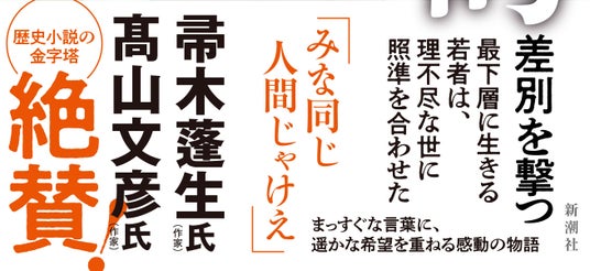 歴史の大きな歯車は、昔も今も個人の志や熱意だけではいかんともしがたいものでしょう。しかし、それを嘆くでもなく、苛立つでもなく、「簡単には変わらない現実」を見つめ、同時に、それは「いつか必ず変えられる」ことを信じる新藏。戦いのなかで成長した彼のまっすぐな言葉は、「歴史小説」という枠を超えて、今を生きる私たちにも明るい余韻と爽やかな感動をもたらしてくれるはずです。