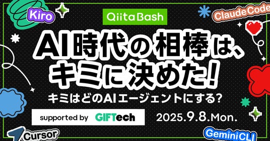 今回のQiita Bashのテーマは「AI時代の相棒は、キミに決めた! ~キミはどのAIエージェントにする?」です。