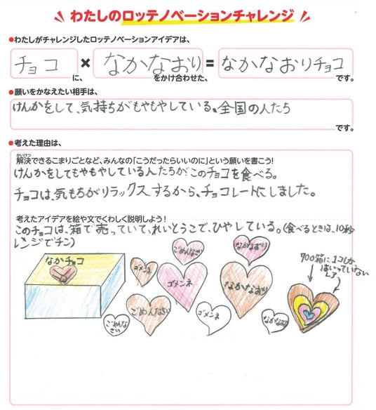 「チョコ」と「なかなおり」をかけ合わせ、けんかをした時のもやもやを解決するアイデア
