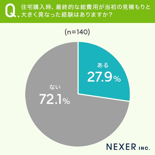 続いて、住宅購入時に最終的な総費用が当初の見積もりと大きく異なった経験があるかどうかを聞いてみました。