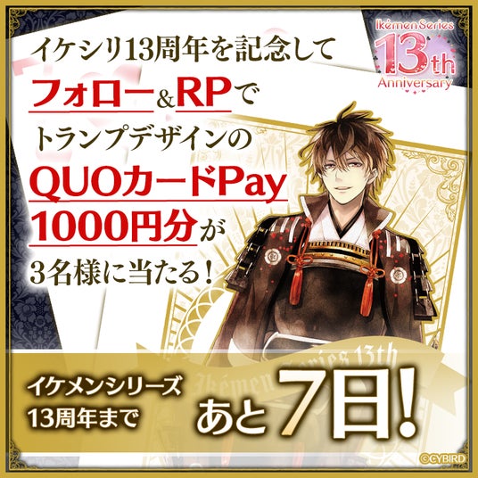 さらにイケメンシリーズ公式X(https://x.com/CYikemen)をフォローとカウントダウンのポストをRPでトランプデザインのQUOカードPayが当たるキャンペーンを実施しているので、ぜひご参加ください。