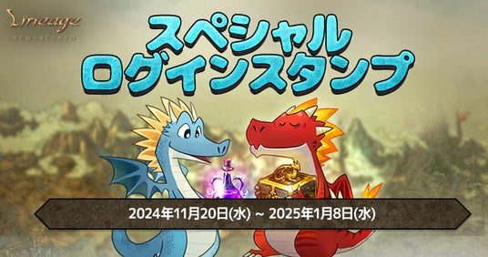 1日1時間以上ゲームをプレイしてログインスタンプを押すと、冒険に役立つさまざまなアイテムが手に入る「スペシャルログインスタンプ」を開始しました。