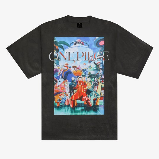Vintage T-shirtONE PIECE エッグヘッド編のメインビジュアルを大胆にフロントに配したTシャツ。ピグメント染めによりヴィンテージライクな風合いに仕上げました。 ボディにはゆったりとした身幅のビッグシルエットを採用。トレンド感のあるストリートスタイルにマッチします。