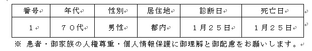 2022-01-31 東京都 新型コロナウイルスに関連した患者の死亡について Tweet ~新型コロナウイルス感染症に関する東京都からのお知らせ~ 都内で新型コロナウイルスに感染した方が死亡されましたのでお知らせします。 お亡くなりになった方のご冥福をお祈り申し上げます。 企業プレスリリース詳細へ PR TIMESトップへ 公式ツイッター Follow @Straightpress 最新情報をTwitterで受け取ろう! 公式フェイスブックページ 最新情報をFacebookで受け取ろう! 前の記事 一覧へ戻る 次の記事
