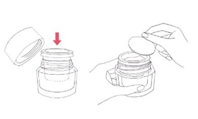 ● レフィルを容器に入れ、密封シールをはがす前にしっかりと押し込みます。